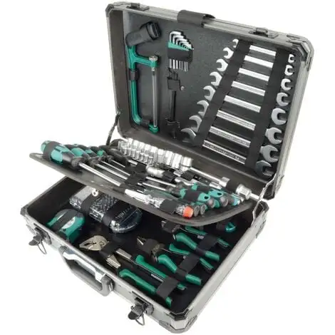 - Jeu d’outils de 133 pièces dans une boîte en aluminium robuste: