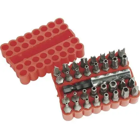 - 6 embouts six pans avec trou de 2 mm (5/64), 2,4 mm (3/32), 2,8 mm (7/64), 3,2 mm (1/8), 3,6 mm (9/64), 4 mm (5/32)