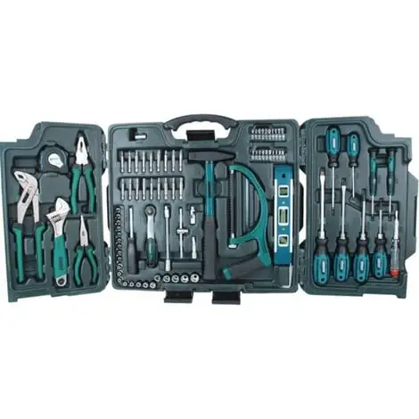 La livraison comprend 89 outils (une paire de pinces, une paire de pinces mixtes, une paire de pinces aiguilles, une clé à molette, des tournevis, des tournevis de précision, un testeur de tension, un marteau rivoir, un niveau de torpille, un ruban à mesurer, une scie à métaux, des lames de scie à métaux de rechange, clés hexagonales à épingles inclinées, une clé à cliquet, un tournevis multi-embouts, un joint universel, une extension, une extension flexible, une barre en T coulissante, un adaptateur pour embout, des embouts de douille, des embouts).