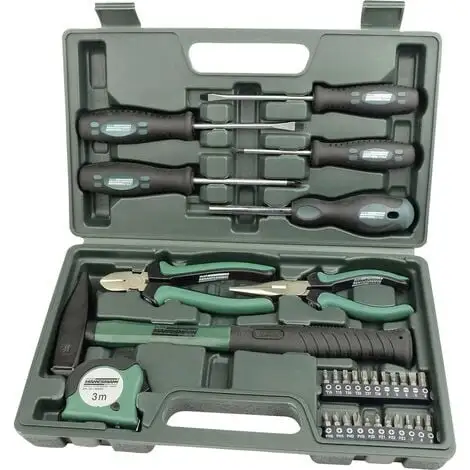 - 22 embouts, 1/4, L = 25 mm, acier CV : 4 x embout droit, 4 x embout cruciforme, 4 x embout six pans creux, 4 x embout Pozidriv, 6 embouts profil T
