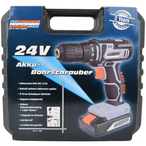 Cette perceuse sans fil de 24 V 1,3 Ah de la marque Brüder Mannesmann, avec un boîtier robuste en bichrome et en matières plastiques, est votre aide au vissage fiable pour toute tâche de perçage.