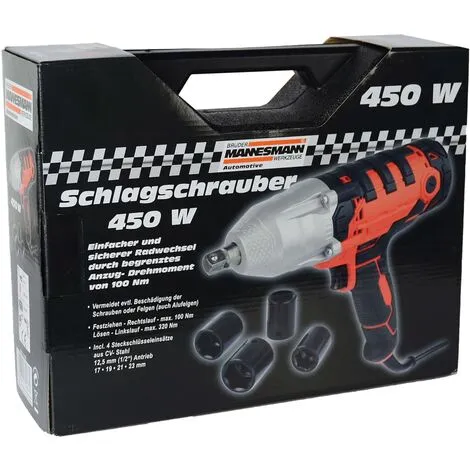 Le tournevis à percussion de 450 W de la marque Brüder Mannesmann est un tournevis à percussion rapide qui peut être utilisé pour un serrage sûr des vis sans effort.
